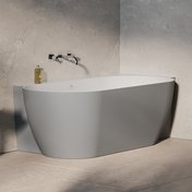 Combină avantajele unei căzi asimetrice și ale unei solitare. Datorită designului său, este destinat instalării într-un colț, ceea ce o face o variantă interesantă a unei căzi asimetrice. Datorită acestui fapt, decorează și băile mai mici. Marginea este finisata cu un arc elegant, care va oferi un spatiu mai mare si mai sigur in jurul cazii. Poți folosi marginea mai lată ca spațiu de depozitare pentru tot ce ai nevoie. Partea din spate poate deasemenea vedea, asa ca va avea un efect elegant in spatiu deasemenea. Cada te îmbrățișează cu linii fine. Marginile rotunjite se lărgesc ușor, astfel încât să vă puteți sprijini în mod natural, într-o formă ovală și să vă relaxați umerii.