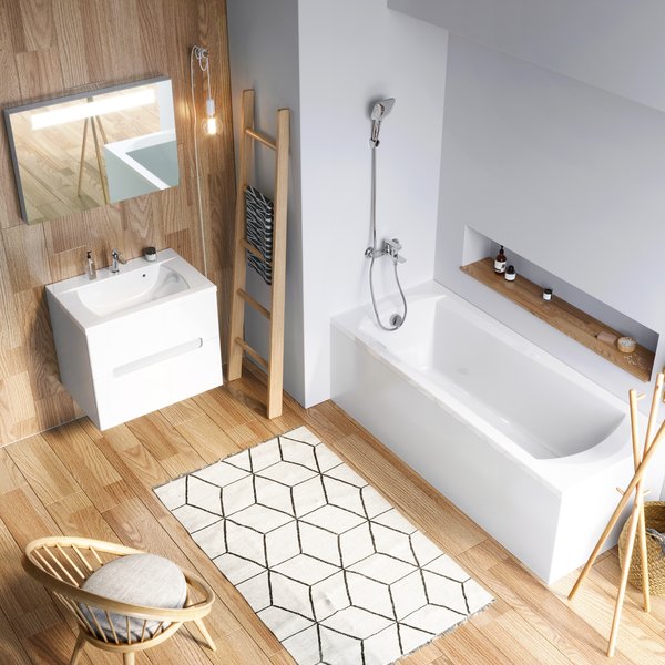 Cada spațioasă este confortabilă și discretă. Tot ce ai nevoie pentru o baie intr-un stil confortabil, modern. Opțiuni de dimensiuni multiple - Puteți alege dintre trei opțiuni de lungime care se vor potrivi în orice baie. Cada, combinată cu paravan de duș, funcționează și ca o cabină de duș spațioasă.