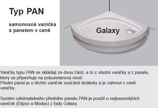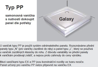 Cădiţele de duş Galaxy cu suprafaţa plată sunt pur şi simplu frumoase. Designul lor modern și elegant evidențiază aspectul fiecărei cabine de duș. Sunt împărţite în patru tipuri LA, EX, PAN, PP.