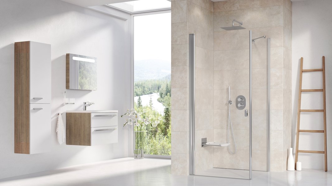 Creați o cabină pătrată sau dreptunghiulară combinând ușa de duș cu o parte fixă. În plus, puteți amplasa cu ușurință o chiuvetă sau o mașină de spălat lângă partea fixă. Varianta dreptunghiulară a cabinei de duș vă va permite să faceți duș confortabil. . Vă sugerăm să alegeți de exemplu dacă se poate, 80 x 100 cm în loc de 90 x 90 cm. Ocupă aceeași suprafață, dar crește utilitatea.