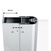 Cu noul profil extins de reglare CNPS, puteți înlocui profilul standard de reglare, care face parte din pachetul de produse Chrome. Prin înlocuirea profilului de poziționare standard cu un profil de poziționare CNPS extins, produsul poate fi extins cu încă 2 cm.