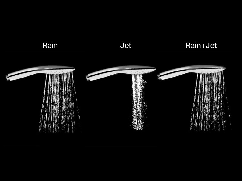 - pară de duș: diametru 120 mm, ABS plastic albă, 3 funcții - Jet, Rain, Jet + Rain