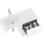 Mobilierul poate fi combinat cu chiuveta încastrată Balance 500 și un sifon fix pentru chiuvete. O altă soluție este o combinație a acestora, cu blatul Balance 1200, pe care așezi o chiuvetă pentru blat, completat de o consolă și un suport pentru prosoape. Pe lângă spațiul de depozitare al dulapului, mai aveți și un spațiu generos de depozitare pe blat.